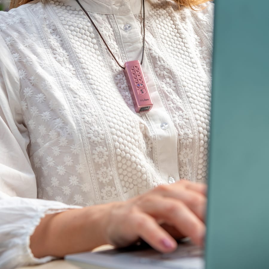 Ein tragbarer, persönlicher Luftreiniger, der eine saubere Mikro-Umgebung rund um den Nutzer schafft.