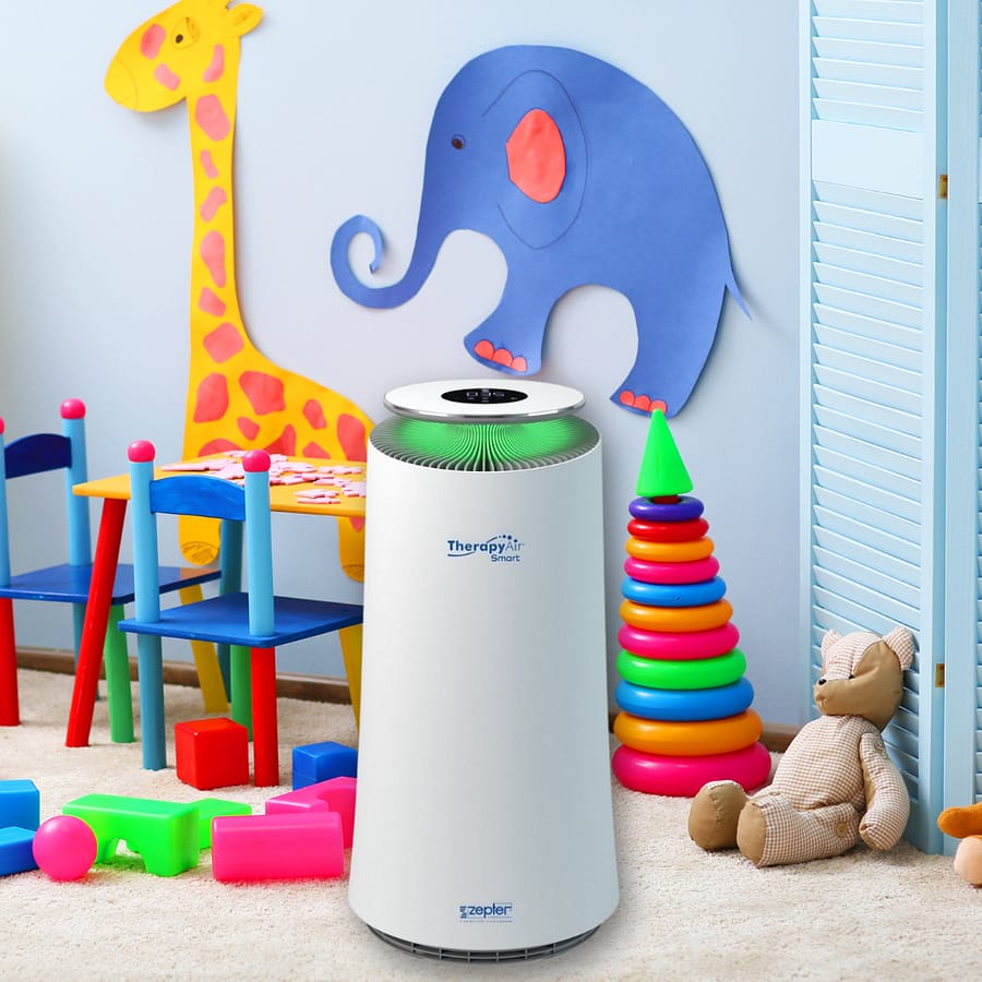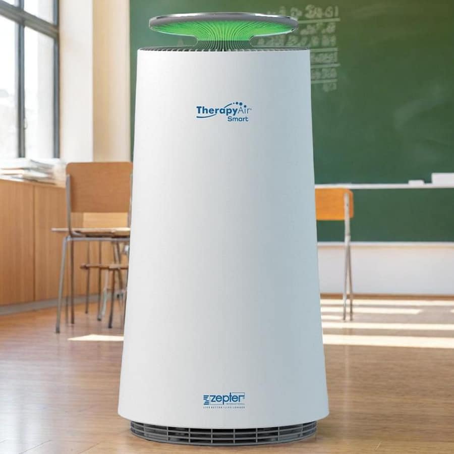 Therapy Air® Smart is an advanced air purification system designed for larger classrooms, open learning areas, and high-traffic educational environments. It combines high-efficiency HEPA filtration, activated carbon filtration, negative ion generation, and integrated UV-C light to help reduce airborne particles, odors, and contaminants while supporting cleaner indoor air.
